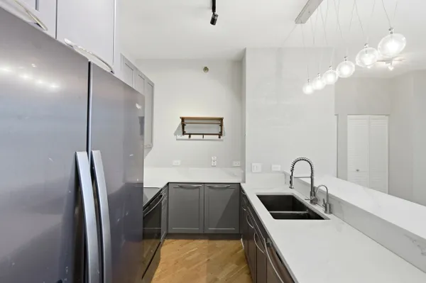Experience city living at its finest in this beautifully designed 2-bedroom, 2-bath residence in sought-after Museum Park. This split-bedroom layout features diagonal hardwood floors, an open-concept living area, and floor-to-ceiling windows that fill the space with natural light. Enjoy your private east-facing balcony with views of the neighboring townhomes, museum, and clubhouse. The updated kitchen showcases maple cabinetry, luxury Quartz countertops, a newer stainless steel refrigerator, dishwasher, advance water filtration system, a breakfast bar for casual dining, and a full pantry for extra storage. The spacious primary suite offers a professionally organized walk-in closet, room for a king-sized bed, and a luxurious bath with a soaking tub, frameless glass shower, and dual vanity. Residents enjoy full access to premium amenities, including 24-hour door staff, a fitness center, rooftop terrace, outdoor pool, clubhouse, clubroom, commissary, and on-site dry cleaning. Premier garage parking is included. Investor-friendly building in an unbeatable downtown location!
