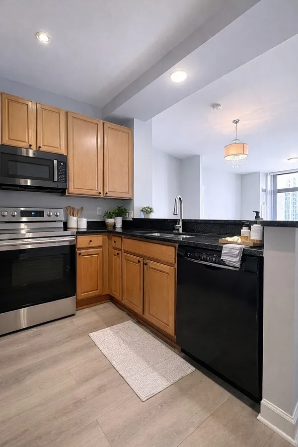 Investor-friendly building. Beautifully updated 2-bedroom, 2-bath condo in Museum Park Tower One, featuring fresh paint and new wood flooring throughout. Bright, open-concept living and dining area with floor-to-ceiling windows leading to a private balcony-perfect for enjoying city views. The kitchen offers a convenient breakfast bar, while the spacious primary suite includes a walk-in closet and a luxurious bath with a separate walk-in shower, soaking tub, and double vanity. The second bedroom comfortably fits a king-sized bed. In-unit laundry for added convenience. Ideally located near Lake Shore Drive, Roosevelt Station (Green, Orange, and Red Lines), and just steps from Jewel-Osco, Target, and Trader Joe's. Close to Soldier Field, the Field Museum, Grant Park, and Burnham Harbor. Additional storage included. One deeded garage parking space available for $30,000.